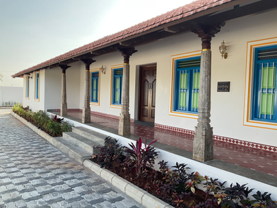 At Agaram Palace we offer 9,200 sq. ft. of beautifully designed space spread across two levels, all on a generous 28,000 sq. ft. site. Our venue has everything needed to ensure seamless events, including ample parking facilities for your guests, a spacious open kitchen and dining area perfect for catering and socializing, and well maintained common toilets.
